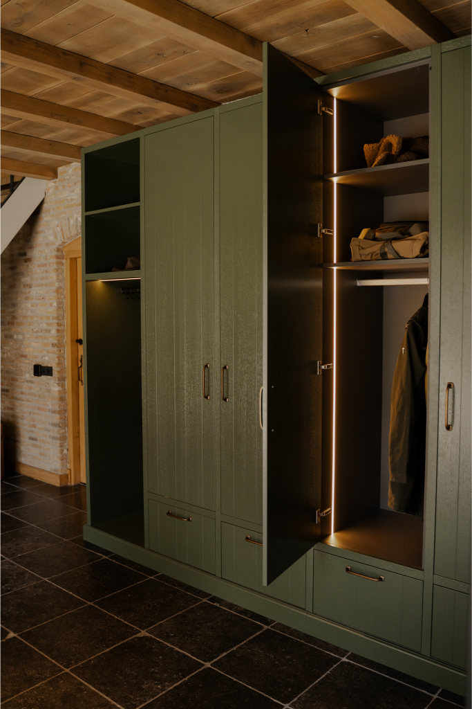 Wij ontwerpen en realiseren maatwerkoplossingen voor elke ruimte. Of het nu gaat om een complete keuken, inbouwkast of een stijlvol tv-meubel, alles wordt volledig afgestemd op je wensen en woning.